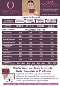O assinante ganha direito a até 60% de desconto em tratamentos odontológicos e 50% de desconto em exames radiográficos enquanto o plano estiver ativo.