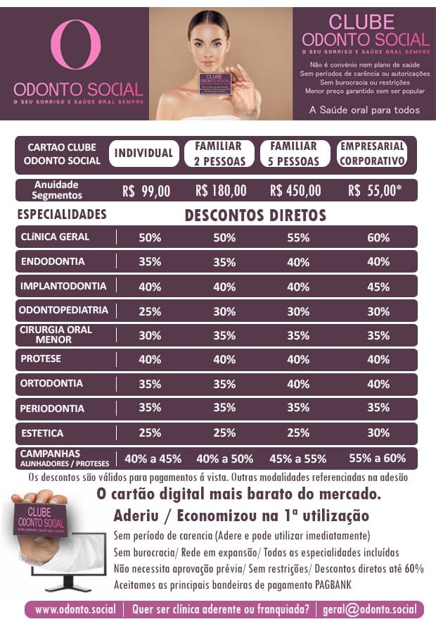 O Clube Odonto Social vai permitir saúde oral a todos os brasileiros pelo menor preço do mercado! Tratamentos com condições especiais!